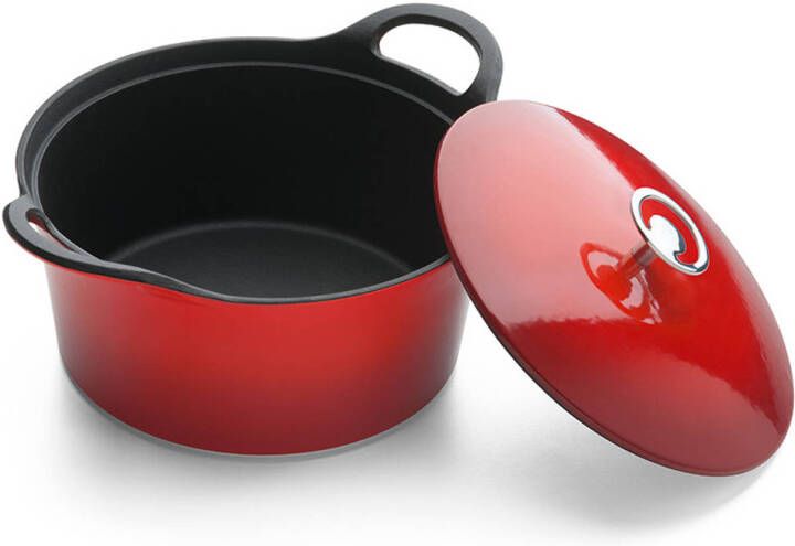 De Cuisinox braadpan is perfect voor het braden van vlees of gevogelte en voor het bereiden van heerlijke stoofschotels- Deze gietijzeren braadpan is ideaal voor het koken op lagere temperaturen- Naast dat het gietijzer de warmte zeer goed vast houdt, wordt de warmte ook nog eens zeer gelijkmatig over de hele pan verdeeld, wat er voor zorgt dat het eten gelijkmatig gegaard wordt- Daardoor is het koken op hogere temperaturen dus overbodig en dit is energiezuinig- De gehele pan is voorzien van een basis email-laag, waarbij de buitenkant van de pan nog eens extra sterk en glad geëmailleerd wordt, wat er voor zorgt dat het mooie kleurverloop op de pan intact blijft- Ook krast de pan hierdoor niet op je halogeen, keramische of inductie kookplaat- Door de roestvrijstalen knop op de deksel kan de pan ook gewoon in de oven tot 200℃- De deksel van de pan is aan de binnenzijde voorzien van nopjes die er voor zorgen dat het eten in pan gelijkmatig bevochtigd wordt- Tevens zorgt dit er voor dat de condens bij het optillen van de deksel voor extra veiligheid, want de condens glijdt niet direct van de deksel, even aan de ‘nopjes’ blijft hangen- De handvatten worden warm tijdens het koken dus pannenlappen of ovenwanten zijn aan te raden bij gebruik van deze pan- Klassiek uiterlijk met moderne vormgeving Gietijzeren pan van zware kwaliteit (4 kg) Diameter van 25 cm en inhoud van 3,4 liter Energiezuinig door optimale warmte verdeling Geëmailleerd Mooi kleurverloop op de buitenkant van de pan Geschikt voor alle warmtebronnen inclusief inductie In de oven tot 200℃.
