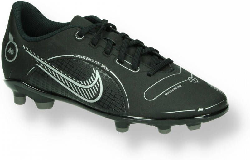 Het dragen van de juiste voetbalschoenen is al het halve werk op weg richting de overwinning. Zorg goed voor je voeten en kies voor de zwart-grijze Vapor 14 Club FG/MG voetbalschoenen van Nike. Draag deze fijne schoenen op zowel natuur- als kunstgras en je bent helemaal klaar voor je volgende voetbaltraining of -wedstrijd!- Bovenwerk: Synthetisch, patroon met textuur voor betere balcontrole Voering: Textiel Inlegzool: Met demping Buitenzool: Rubber, chevronvormige en conische noppen Sluiting: Veter Ondergrond: Multiple Ground (MG), aanbevolen voor natuurgras en kunstgras Noppenconfiguratie: Messi, voor ongeëvenaarde snelheid en wendbaarheid Nike-logo: Zijkanten.